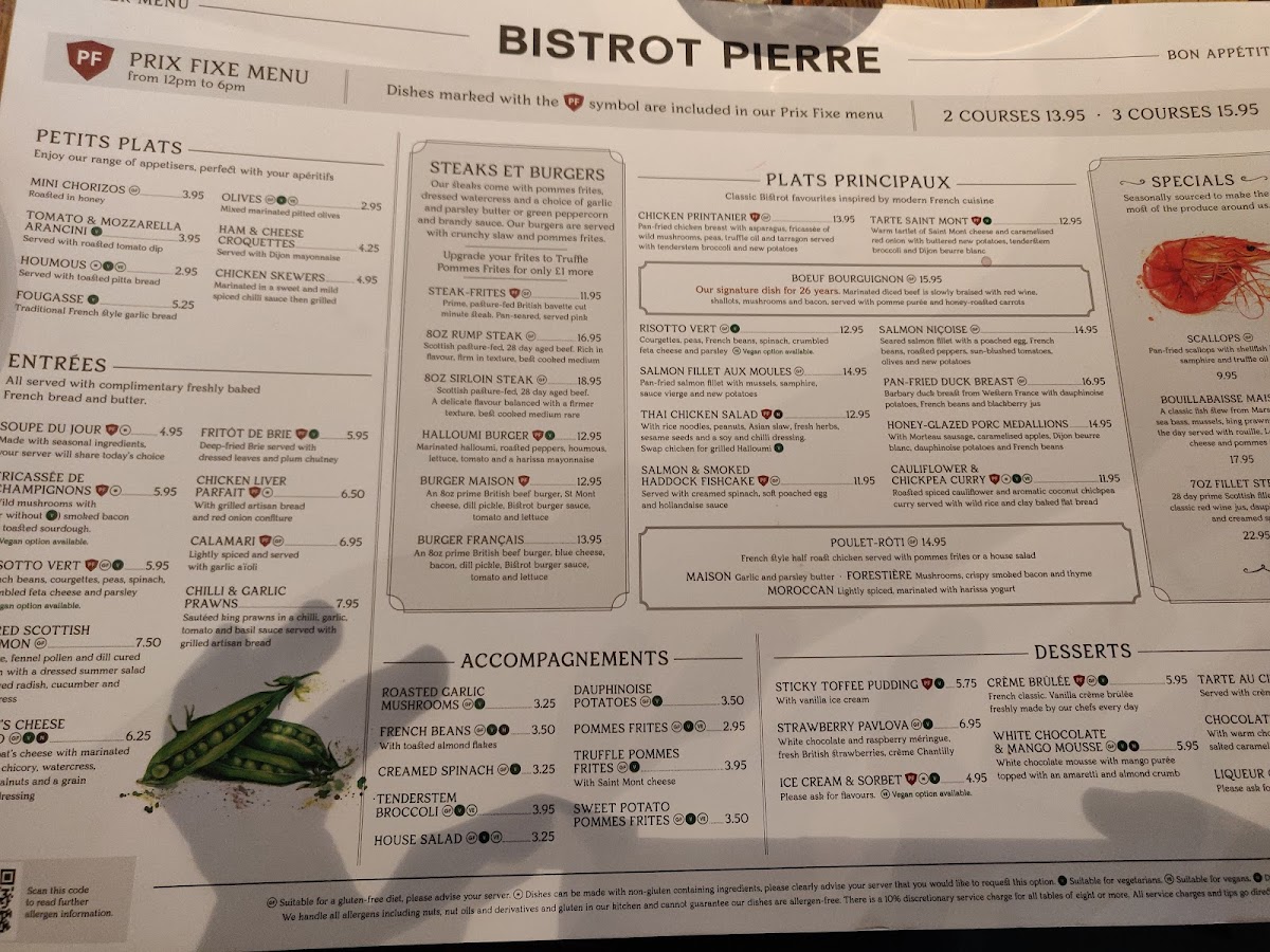 What sets Bistrot Pierre apart is its commitment to providing a full French dining experience at a reasonable price. The menu offers a variety of options that cater to different dietary preferences, including vegetarian and gluten-free choices. With attentive service and a cozy atmosphere, it's an ideal spot for both casual meals and special occasions.